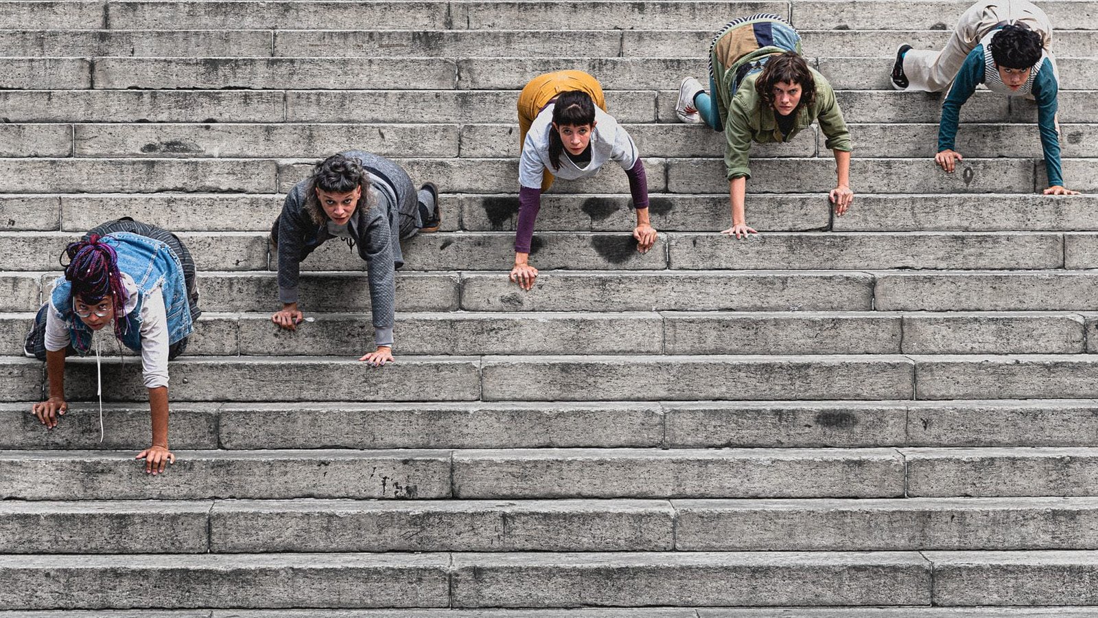 “Degraus” é uma ação em dança que usa escadarias de prédios públicos para pesquisar, de forma intensiva, os corpos em situação de risco. Do tensionamento entre a mobilidade e a arquitetura, surge o desejo de reunir pessoas diante das instituições de poder para o exercício do comum como lugar de imaginação praticada. A rua em sua condição performativa é coautora e protagonista de agenciamentos entre os corpos, visíveis e invisíveis, que negociam estratégias e (re)encantamentos do espaço. Tudo aqui é coreográfico. Tudo está performando. Já está acontecendo.