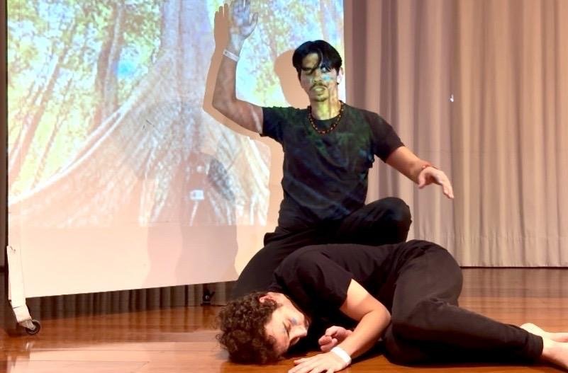 Um grupo de alunos do 5º ano é conduzido pelo professor-documentarista a conhecer e documentar a história de uma árvore, com raízes aéreas, que se desloca na Amazônia. Eles transformam a aula de teatro numa experiência lúdica e ritualista ao mesmo tempo em que compartilham o que aprenderam com o público.