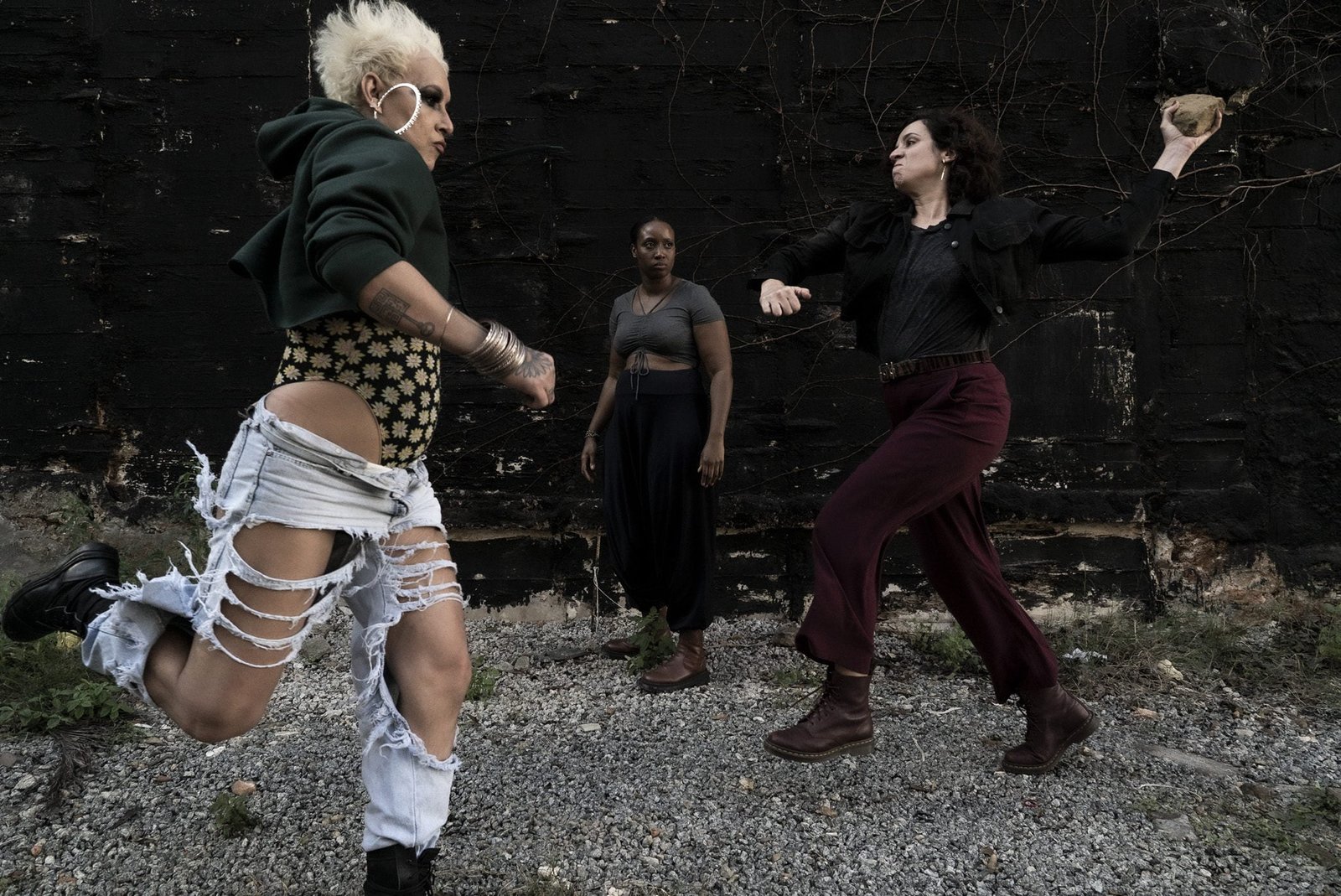 Os ensaios, que ocorreram em São Paulo durante os meses de maio a agosto de 2023, serviram de espaço para muitas experiências e diálogos transversais ao projeto: “Trouxemos para a sala de ensaio, nesse grande laboratório, algumas mulheres muito incríveis para trocarem com a gente, como a pensadora transfeminista Helena Vieira, a roteirista e dramaturga Silvia Gomez, a jornalista e comunicadora popular do Movimento das Mulheres Camponesas, Adriane Canan, essa equipe foi essencial para essa migração do livro para o palco”, conta Yara.