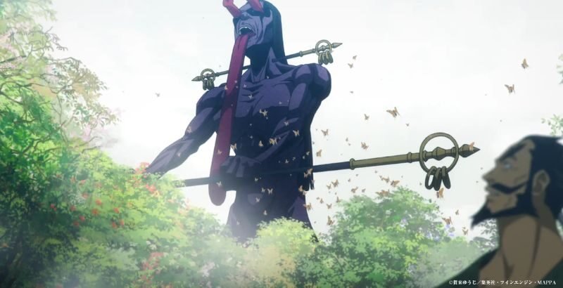 Tratando da animação, Hell’s Paradise é deslumbrante. A beleza da série vem da capacidade do Studio MAPPA dar tanta atenção e cuidado aos elementos grotescos da série, como as criaturas e deuses, que permitem destacar também os designs bonitos. A ilha é vibrante e deslumbrante, como também decadente, e as criaturas que a habitam são vislumbres de criaturas e organismos. O estúdio, com sua experiência em Jujutsu Kaisen e Chainsaw Man, faz com justiça.