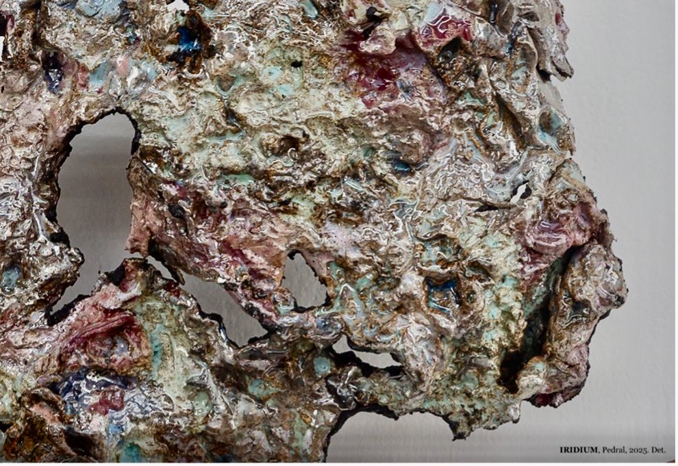 O título da mostra é uma referência ao Irídio, elemento químico raro na Terra, mas comum na composição de meteoritos. Acredita-se que a camada fina de irídio na crosta terrestre tenha vindo do impacto de um asteroide há cerca de 66 milhões de anos. “Desse modo, apontando para a presença física das forças magnéticas e a um “avivamento” da terra cozida, do ferro e de outros minerais que habitam a superfície terrestre e do cosmos, é como se as cerâmicas paramagnéticas passassem a carregar, elas também, um índice geológico de tempo ficcional. Estou, ali, lidando com esses muitos tempos desconhecidos”, diz a artista, mestra em Processos Artísticos Contemporâneos pela UERJ, com uma exposição agendada no Paço Imperial em 2026. “Os trabalhos de Mazloum nos convidam a imaginar dobras e sobreposições de tempos diversos, sugerindo algo desconhecido, que se expande na imensidão do cosmos”, finaliza a curadora.
