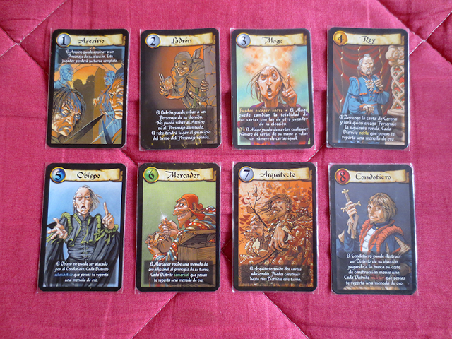 Esses papéis vão desde o letal Assassino, ao ágil Ladrão (que deixara seus adversários sem dinheiro nenhum), passando também por Nobres como o Rei e o Bispo, e outros membros da sociedade como o Arquiteto e o Comerciante.
