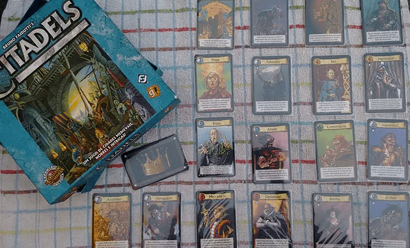 Em Citadels, cada jogador é o governador de uma cidade… em uma terra de cidades rivais. Os jogadores precisarão construir a cidade mais impressionante subornando os aristocratas locais, construindo estruturas impressionantes e talvez até mesmo alguma sabotagem à moda antiga. Ou seja, Citadels é um jogo onde os jogadores constroem e expandem sua sua cidade antes dos seus oponentes. Para tais feito, é preciso ter cartas, ouro e sabotar os demais jogadores.