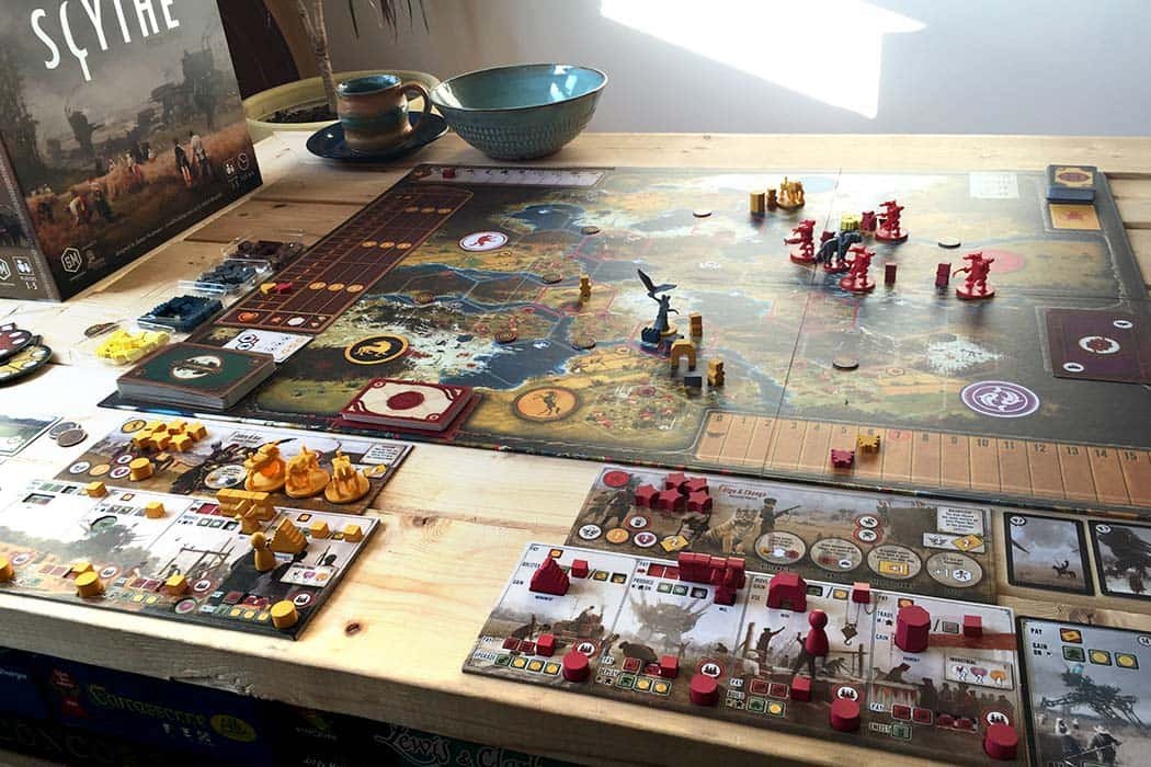Seu design gráfico é bem claro e pensado, a arte temática, as incríveis peças de madeira e resina e as miniaturas de plástico detalhadas transformam o jogo em uma experiência altamente envolvente. Seu desempenho sempre é melhor com estratégias de longo prazo, combinando ações para um jogo que seja relativamente rápido em comparação com outros dos jogos de estratégia pesada, mas uma vez que Scythe está rolando, a ação não desacelera até que um jogador atinja as seis estrelas – fazendo o jogo acabar.
