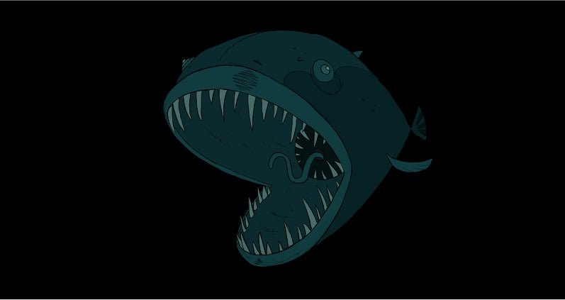 A animação dos personagens-título, os bizarros peixes das fossas abissais, é primorosa e um deleite para mim que sempre fui fascinada por estas criaturas ímpares. As zonas abissais são regiões do fundo do mar, a partir dos 2000 metros de profundidade – embora existam peixes abissais que vivem em profundidades menores – e que se caracterizam pela ausência de luz solar, alta pressão e temperaturas baixas. Para sobreviver nestas condições, os peixes abissais desenvolveram características que por vezes podem lhes garantir a alcunha de “monstros”, mas são adaptações biológicas sagazes, como a bioluminescência, que é a capacidade de um animal produzir luz própria, no caso dos peixes, para atrair presas e parceiros. Estima-se que sejam conhecidas 17 mil espécies abissais, mas esta zona marinha ainda é bastante inexplorada.