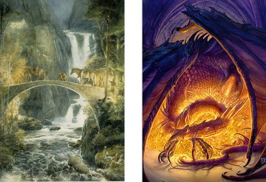 Nota: Alan Lee e John Howe, como já informamos, são dois ilustradores praticamente especilizados na mitologia de Tolkien e que contribuiram na produção da Trilogia do Anal de Peter Jackson.