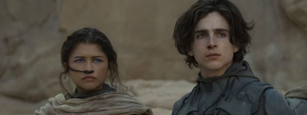 Villeneuve confirma nessa segunda parte da saga que foi, de fato, a melhor escolha para comandar a adaptação. O cineasta já havia mostrado seu domínio imagético no campo da ficção científica em “A Chegada”, e em “Duna 2” ele vai além. Amparado pelo belíssimo trabalho de fotografia de Greig Fraser, o diretor vai mixando paletas de cores de acordo com a perspectiva da trama e dos próprios personagens, fazendo algo de marejar os olhos do mais exigente fã da obra de Herbert. As tonalidades alaranjadas do planeta desértico Arrakis (conhecido como Duna, daí o título), vistas em diversas ilustrações desde os anos 60, são mostradas com fidelidade ao imaginário coletivo dos leitores ao longo dessas quase seis décadas. E a trilha sonora de Hans Zimmer continua emoldurando de forma magistral o épico. Ainda que o compositor recorra a clichés, até eles parecem se encaixar perfeitamente.