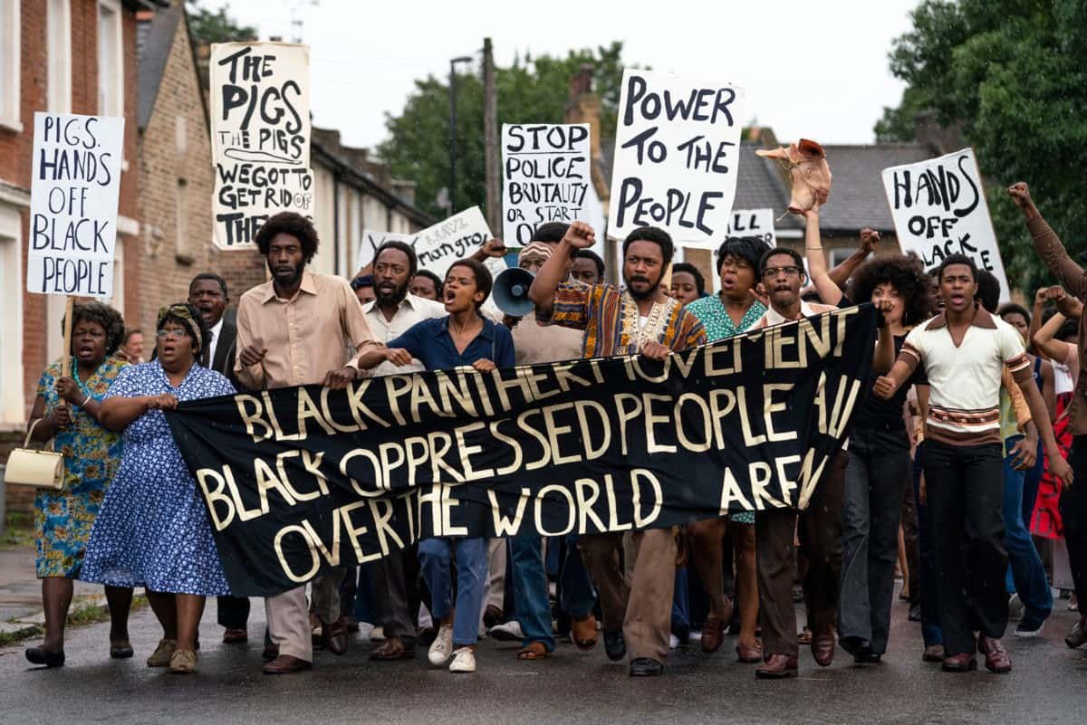 Small Axe é talvez seu trabalho mais pessoal sobre essa perspectiva. É uma série de televisão, feita pela BBC. Bem, não uma série em si, mas uma antologia de 5 filmes que se convergem pelo discurso. São histórias singulares, mas que dão uma mostragem da virulência racial na Inglaterra dos anos 1960 a 1980. “Mangrove”, “Lovers Rock”, “Red, White and Blue”, “Alex Weatle” e “Educação” compõem histórias que mesmo sob o verniz certeiro de McQueen expõem a crueldade consentida pelas instituições e sociedade contra a comunidade caribenha anglófona britânica.