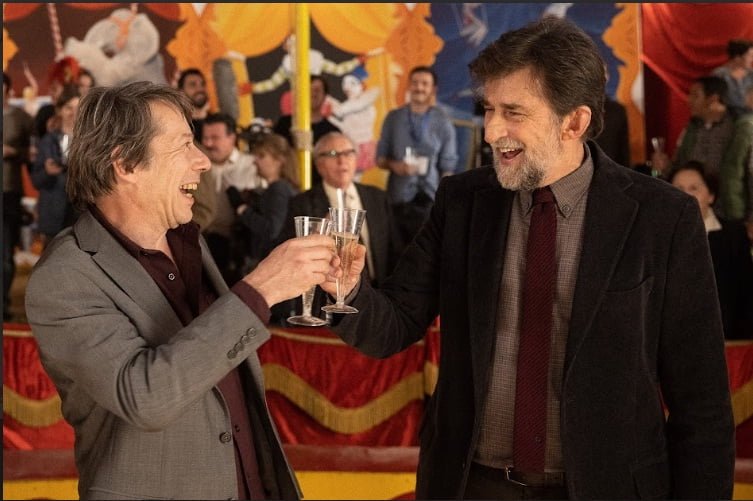 Um dos produtores do filme dentro do filme, o espaventado Pierre (Mathieu Amalric), consegue uma reunião entre Giovanni, Paola e executivos da Netflix, que estariam interessados em distribuir o filme pela plataforma de streaming. Os executivos ficam repetindo que as produções são vistas em 190 países, como se este argumento por si só já fosse suficiente para Giovanni aceitar a proposta. A outra opção para terminar de financiar o filme é apresentá-lo para produtores coreanos, que veem mais poesia e significados profundos no filme do que seu próprio criador.