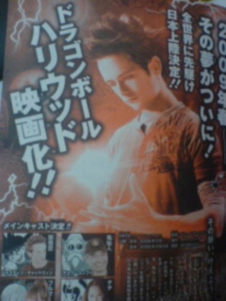 E já está na internet um scan da possível primeira imagem oficial do Goku no filme Dragon Ball, a fotografia pertende a revista Shonen Jump número 24, ainda inédita no Japão.