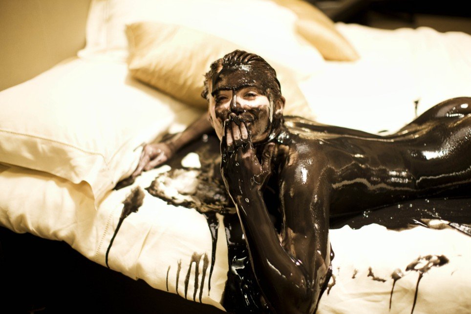A cena, que nos remete ao filme Goldfinger, deve ter sido um verdadeiro sufoco para a atriz, que ficou coberta da cabeça aos pés com uma substância negra parecida com óleo. Ela disse: “Eu não podia me mexer. Eu não podia ver, respirar ou ouvir porque ficava entrando nos meus ouvidos. Foi desconfortável, mas é algo que eu vou sempre lembrar e será algo icônico no filme.”