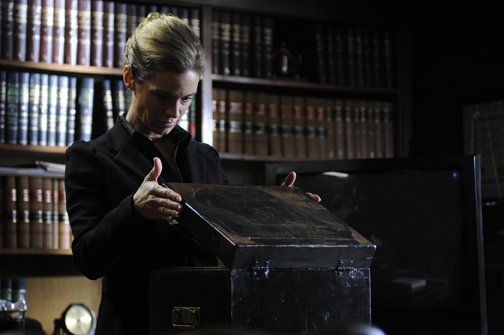 A esposa de Jigsaw é chamada pelo advogado do marido e recebe dele um fita de vídeo e uma caixa, mas não aparece o que tem dentro dela.