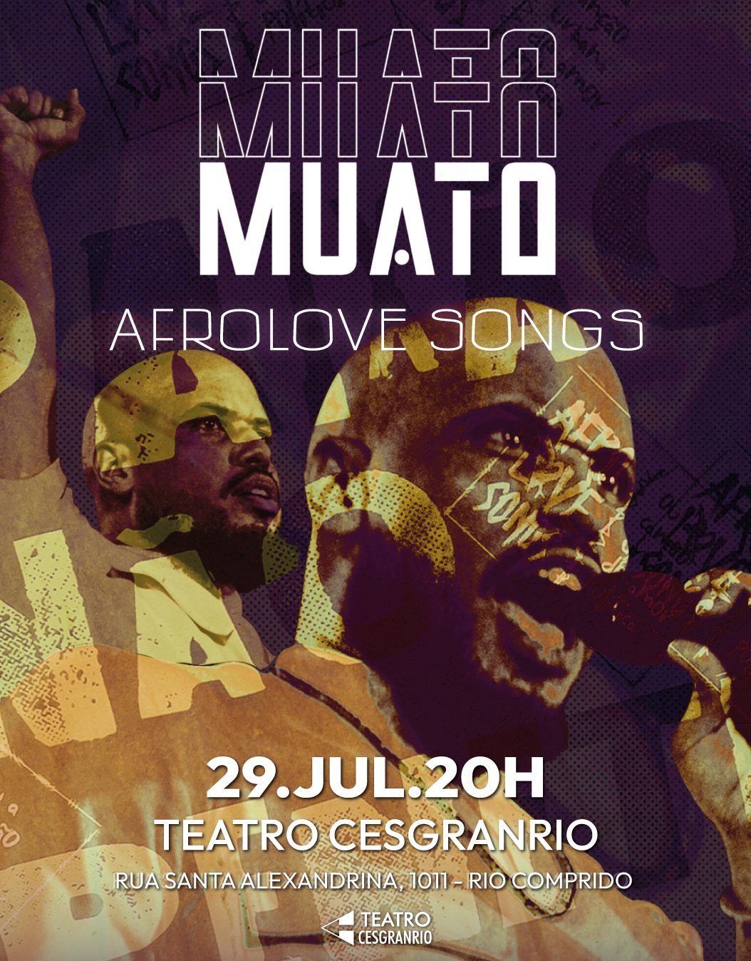 Considerado um dos artistas mais talentosos desta geração, Muato estreia seu novo show, “Afrolove Songs”, no Teatro Cesgranrio, no Rio Comprido, no dia 29 de julho, sábado, às 20h. No palco, o compositor, poeta, beatmaker e performer mescla jazz, rap, MPB, trap soul, afrobeat, pagode e funk para abordar o amor sob o ponto de vista social, tendo as relações amorosas vividas por pessoas negras como tema central.