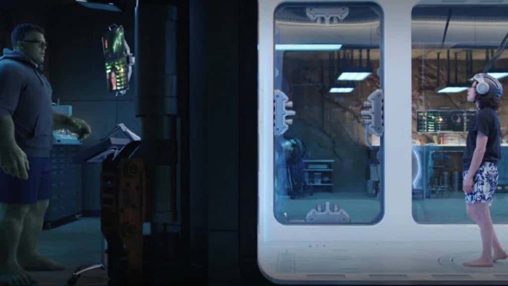 Logo depois aparece Bruce Banner (Mark Ruffalo) na forma do Professor Hulk, em um laboratório onde ela está dentro de uma câmara. Banner está monitorando-a para a transformação e dando uma espécie de tutorial, dizendo: “essas transformações são desencadeadas pela raiva e pelo medo”, e aperta um botão.