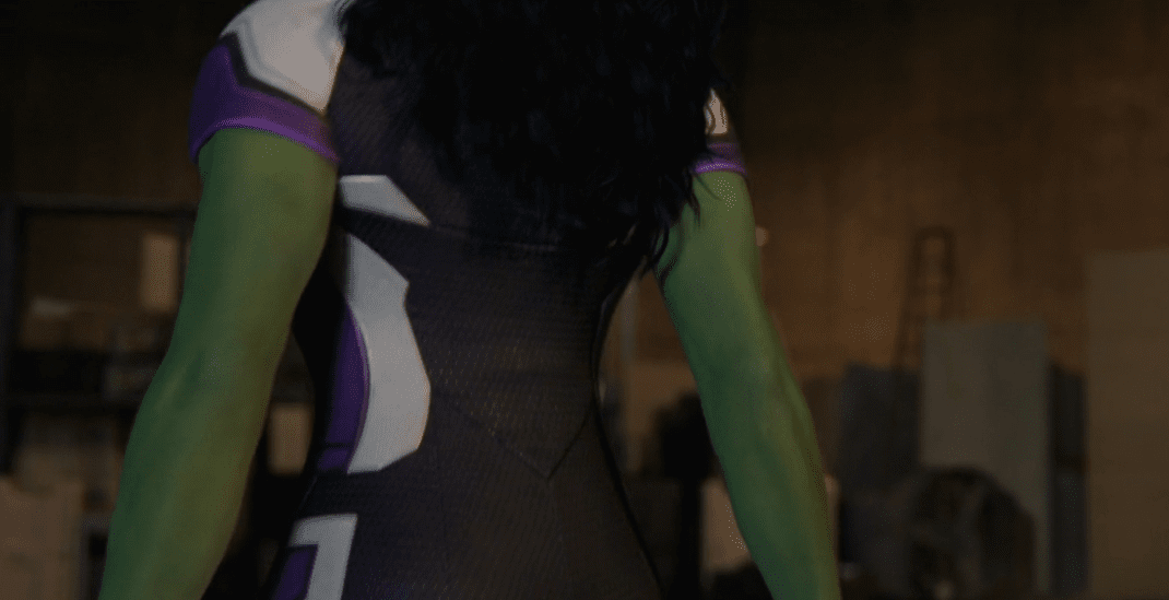 “Sou Jennifer Walters. Sou uma advogada normal.” Daí vemos a personagem indo para o seu escritório e sem seguida é mostrada de costas já transformada em Mulher-Hulk. É quando ela, ainda na voz em off, diz “bem, não tão normal”.