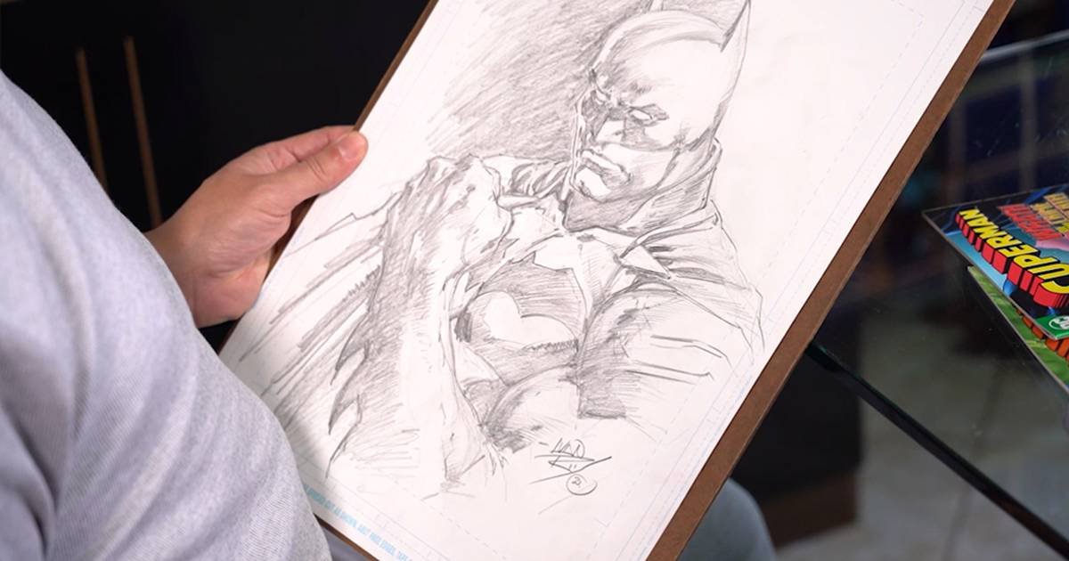 Desenhando uma arte inspirada em The Batman (quando o quadro foi gravado ainda não havia saído o trailer), ele disse que gosta do estilo mais esguio do Batman em início de carreira, lembrou que o Batmóvel no início era mais simples, como o que será visto no filme.