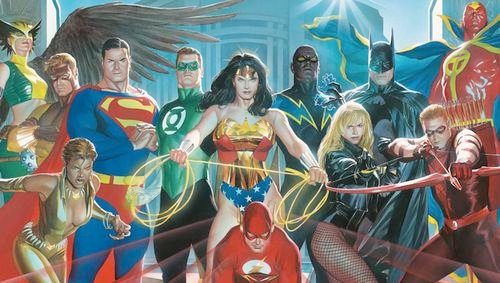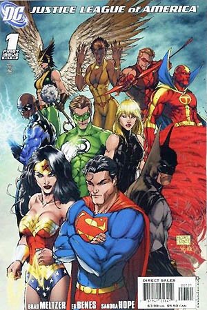 Lá estavam finalmente reunidos Superman, Batman, Mulher-Maravilha, Caçador de Marte, Aquaman, o Flash III Wally West, que evoluíra bastante desde que substituiu seu mentor no Pós-Crise, e o novíssimo Lanterna Verde Kyle Ryder, um desenhista com a mente mais abstrata e criativa de todos os seus antecessores, utilizando um anel sem a fraqueza do amarelo mas quase nenhuma experiência como super-herói. Kyle era, literalmente, um Lanterna Verde. Eram versões atualizadas dos sete membros originais e mais famosos do grupo e compunham para Morrison um panteão de deuses alegórico, com diferentes poderes (Gardner) e diferentes personalidades (O`Neil Freedrich Wein e Englehart).