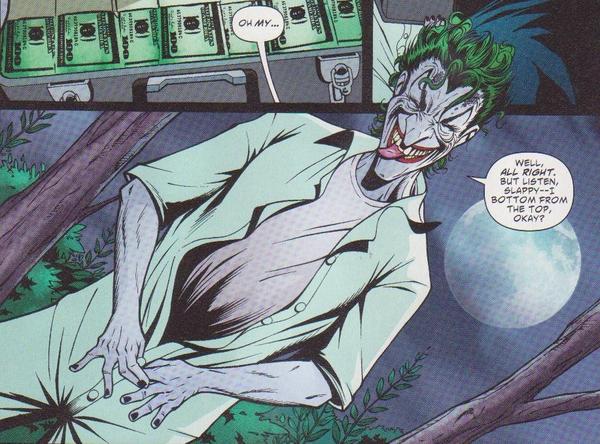 Smith traz um Palhaço do Crime nunca visto antes, com um adicional de depravação sexual ausente na maioria de suas aparições. O Coringa faz todo tipo de referencia sexual (do estupro a necrofilia) e até sugere de que mais de um o pegará de surpresa, sem falar na forma que conversa com seu arquinimigo, a loucura chega a um novo patamar.