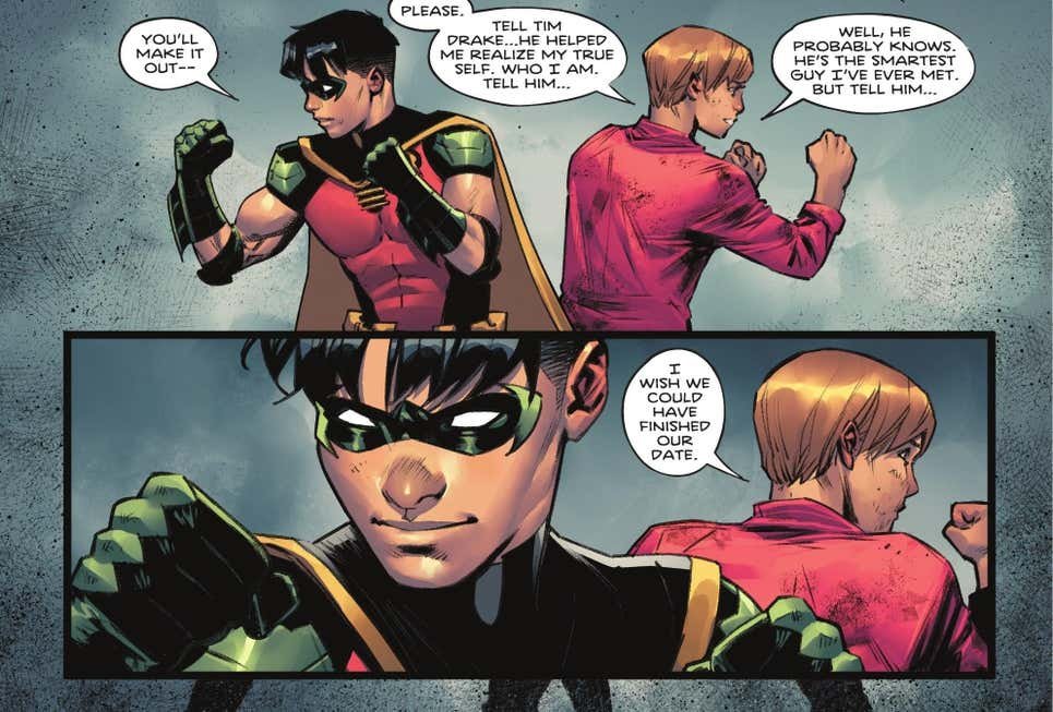 A edição termina com Tim Drake e Bernard se encontrando e combinando um encontro romântico para Batman: Urban Legends #10. Vamos acompanhar!