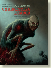 O livro seguinte seria mais um suplemento de antagonistas para o sistema, ao invés do jogo, o nome “The Book of Unremitting Horror” (algo como o livro do Horror incansável), que devo confessar é um dos melhores do estilo. Pouca atenção é dada a regras aqui, basicamente temos diversas descrições sobre criaturas bizarras, com ótimas histórias e personagens, que podem e devem ser usados para qualquer jogo de horror (eu já usei o livro para WoD e para CoC). O livro surpreende e inova o gênero, trazendo ótimos antagonistas para qualquer mesa justamente por não ser um “Monster Manual”, que perde páginas e páginas com instruções mecânicas e pouco fala realmente sobre os hábitos/cultura/particularidades da criatura.