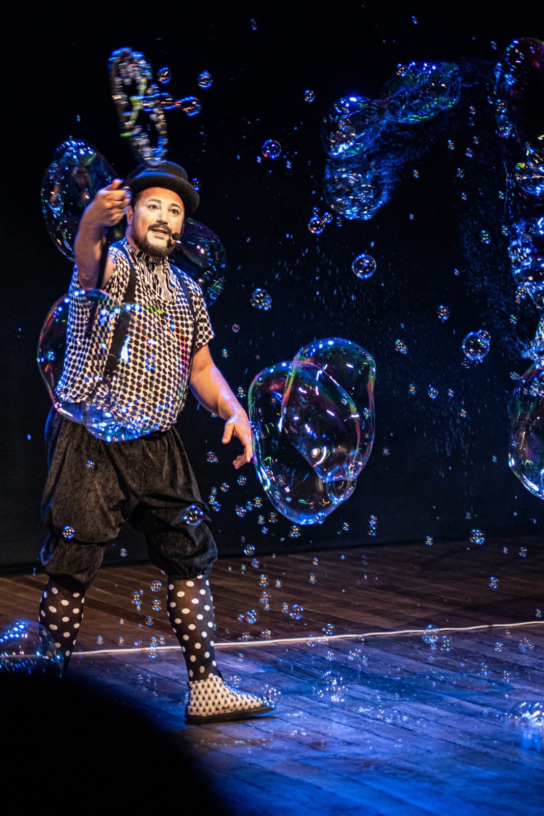 Doriswoldo não apenas manipula as bolhas com maestria, mas também as combina com elementos de malabarismo e interação direta com a plateia. As bolhas, que variam das pequenas e delicadas até as gigantescas e imponentes, desafiam as leis da física ao flutuar e dançar pelo palco, criando um ambiente de pura magia.